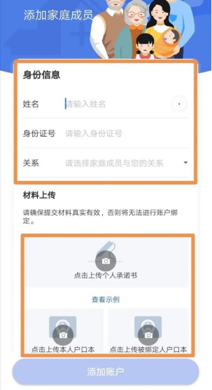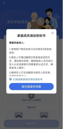 如果您添加的家庭成员小于16周岁,直接点击【添加账户】按钮即可完成账户关联。