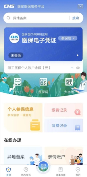 (2)进入国家医保服务平台APP首页,首先需要登录个人医保电子凭证。